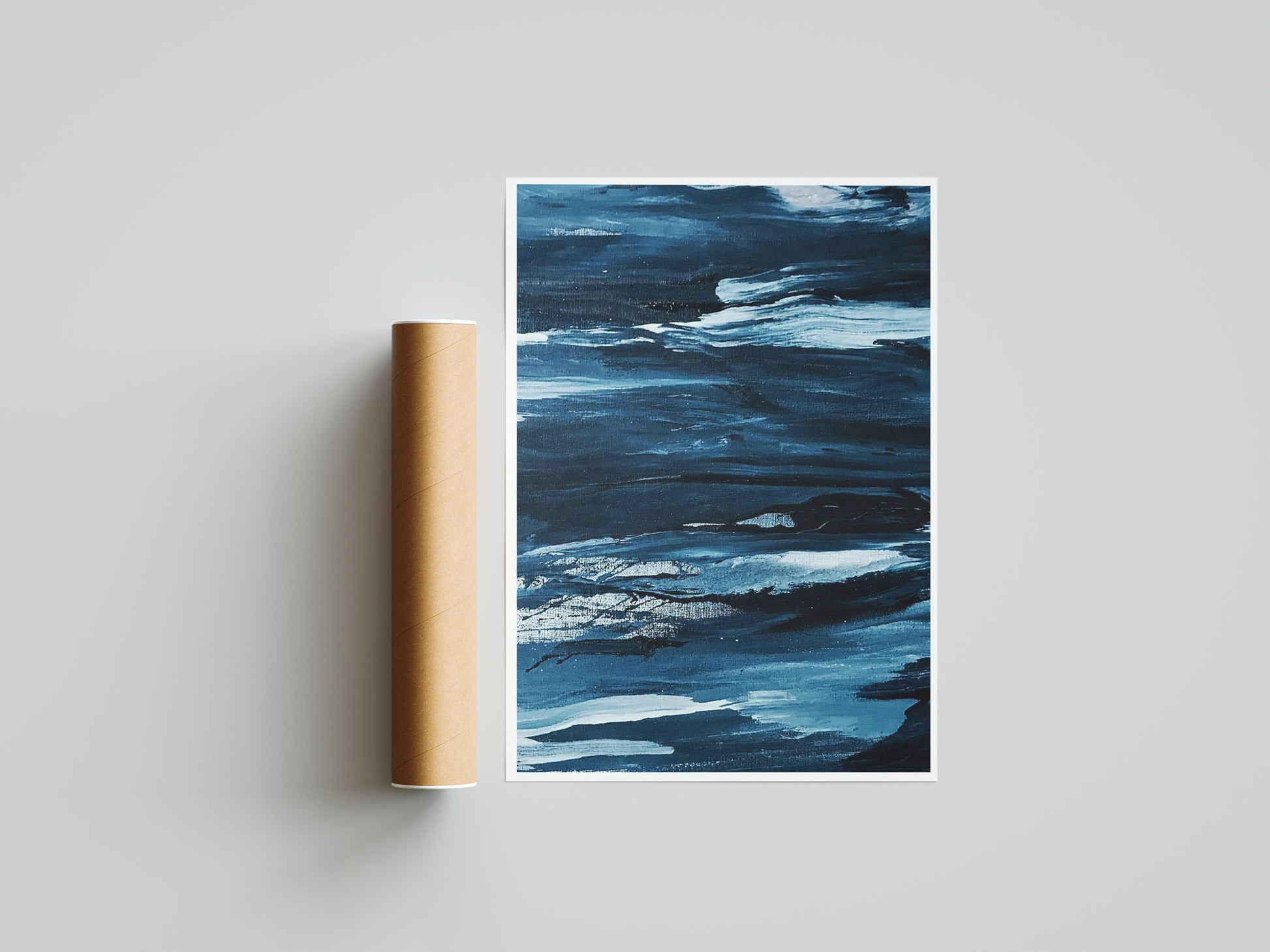 This abstract piece features bold blue and white streaks, creating a dynamic sense of motion and energy. The fluid, sweeping lines evoke a feeling of movement, as if captured in a moment of transformation, where calm and chaos coexist. The abstract nature allows for individual interpretation, inviting the viewer to explore the emotional undercurrents and patterns hidden within the streaks.