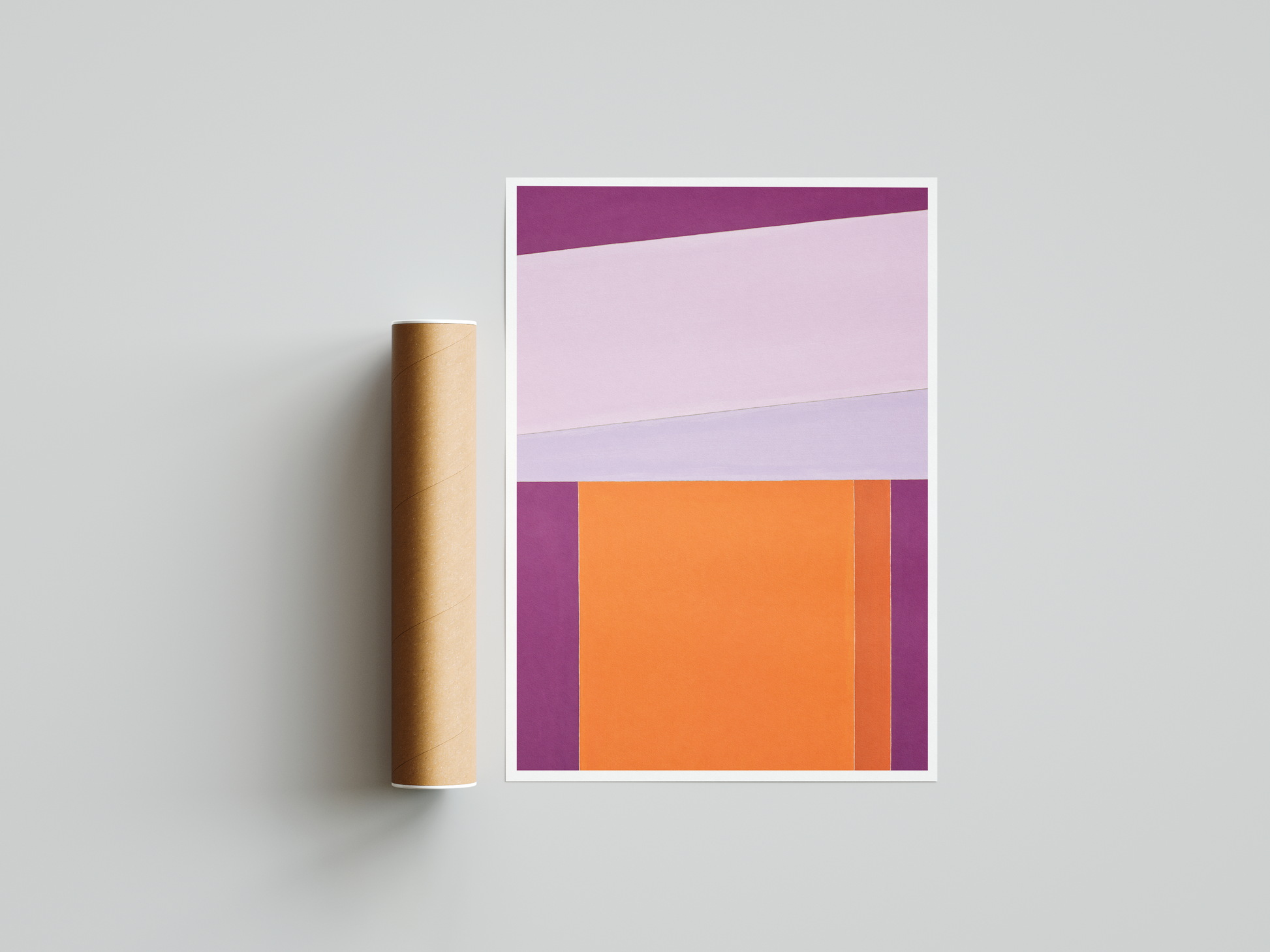 In the piece, you might see the purple, deep and mysterious, seemingly holding back the fiery intensity of the orange, which radiates energy and warmth. Their meeting points might become points of intrigue, where the boundary isn't just an interruption but a space for fusion or contrast, giving the art a sense of movement and evolution.