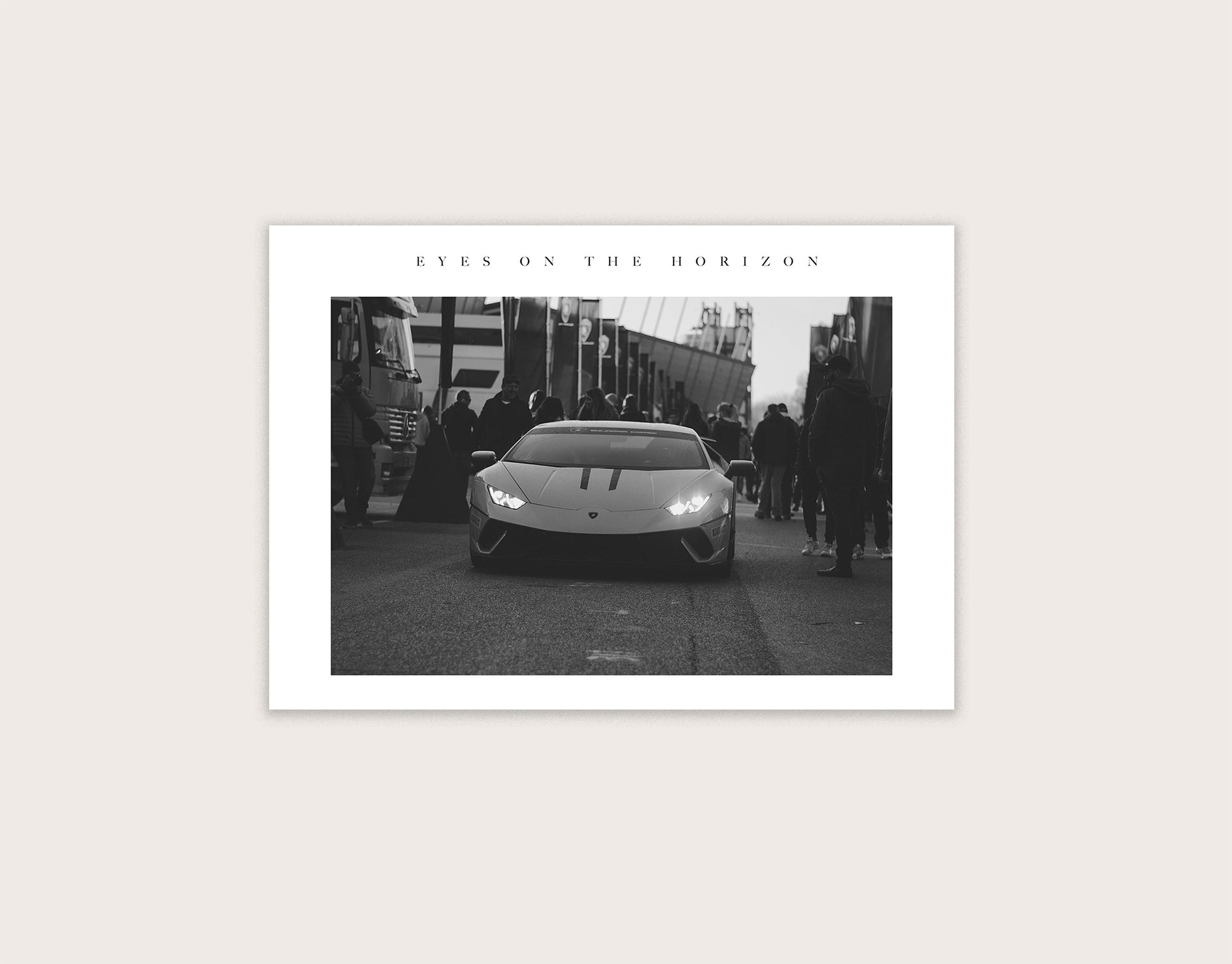 A moment of excitement, admiration, and awe. The scene is dynamic and filled with energy, showcasing both the thrill of the moment and the allure of the Huracán.
