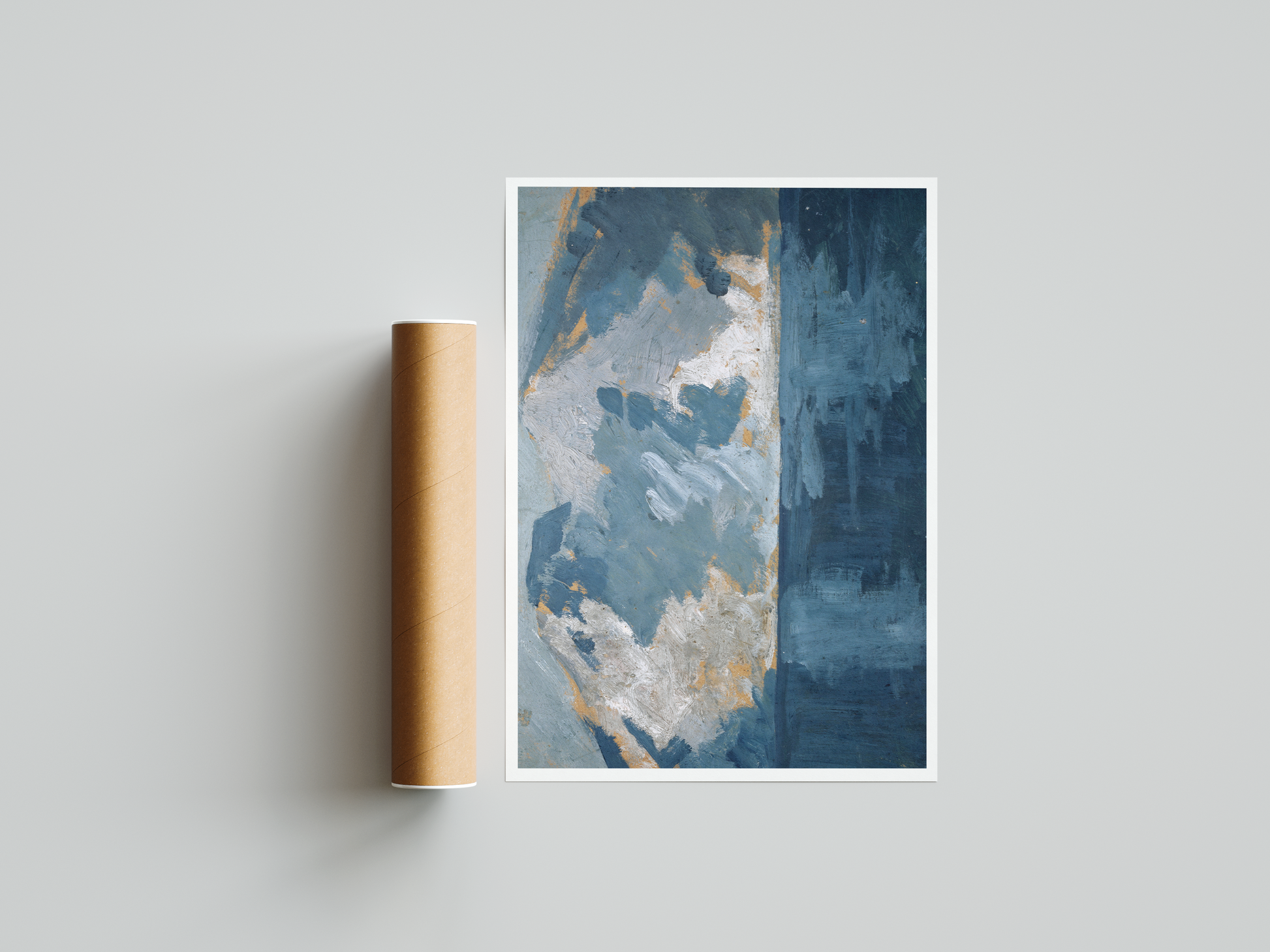 This art print depicts a striking iceberg floating on a cool, deep blue ocean. The crisp whites of the ice contrast beautifully with the serene blues of the water, capturing the quiet majesty and isolation of the polar landscape. The painting evokes a sense of calm, stillness, and the raw beauty of nature, making it a perfect piece for lovers of seascapes and minimalist, contemplative art.