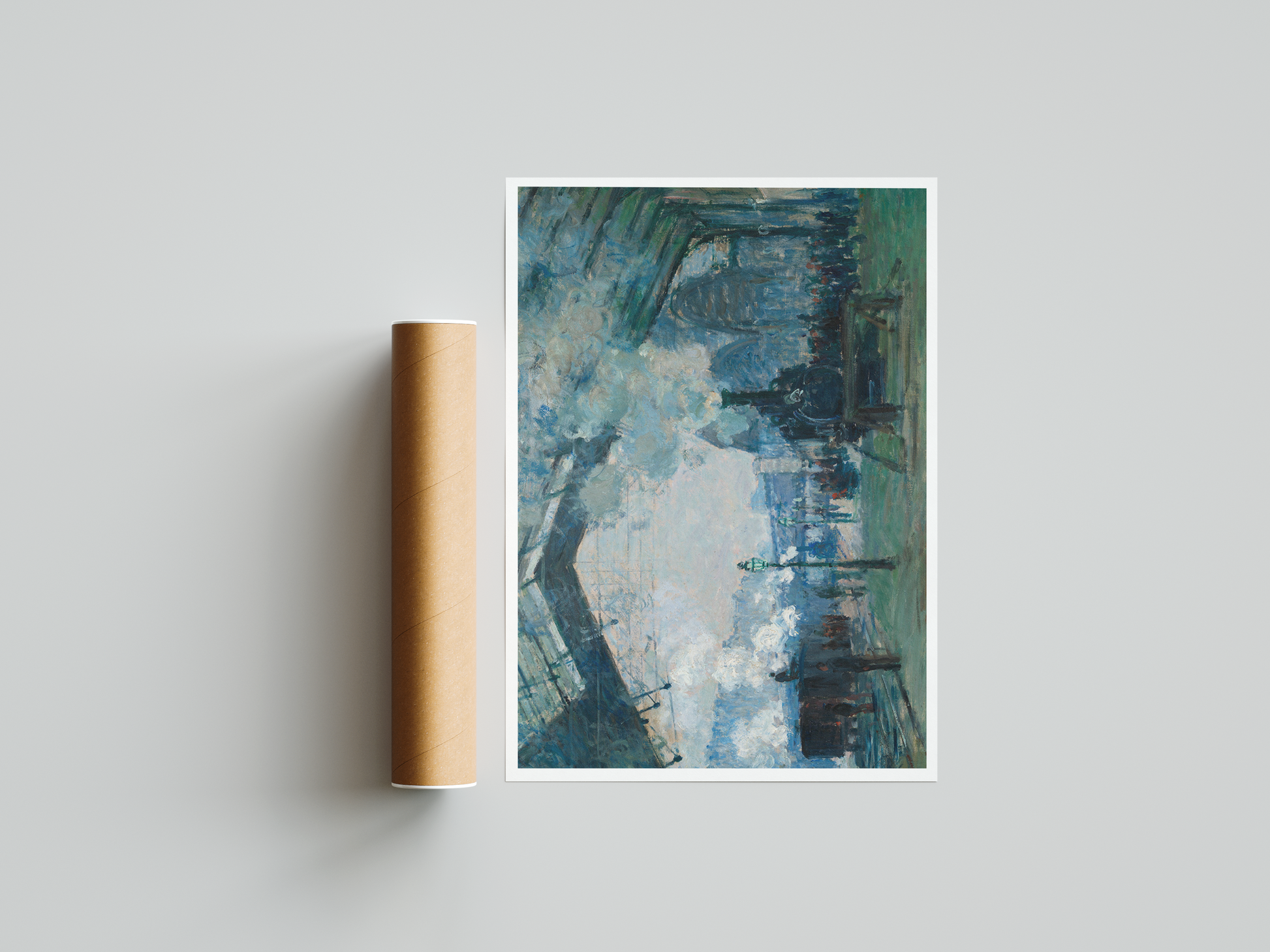 This art print celebrates historical industrial beauty, combining motion, atmosphere, and the timeless allure of steam locomotives.