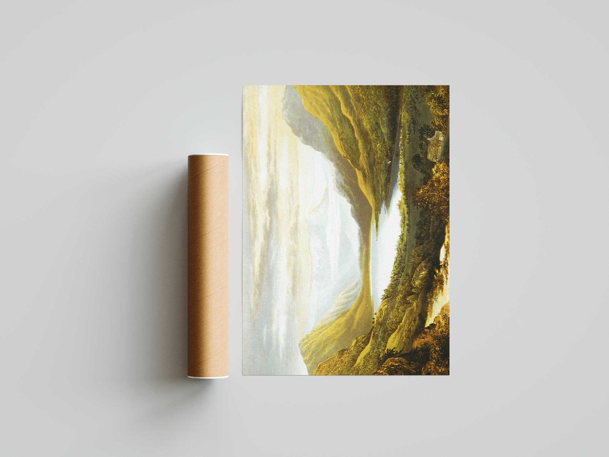 This art print captures the harmony between land, water, and light — a quiet celebration of nature’s renewal at dawn. The atmosphere feels pure and contemplative, inviting the viewer into a space of calm reflection and timeless beauty.