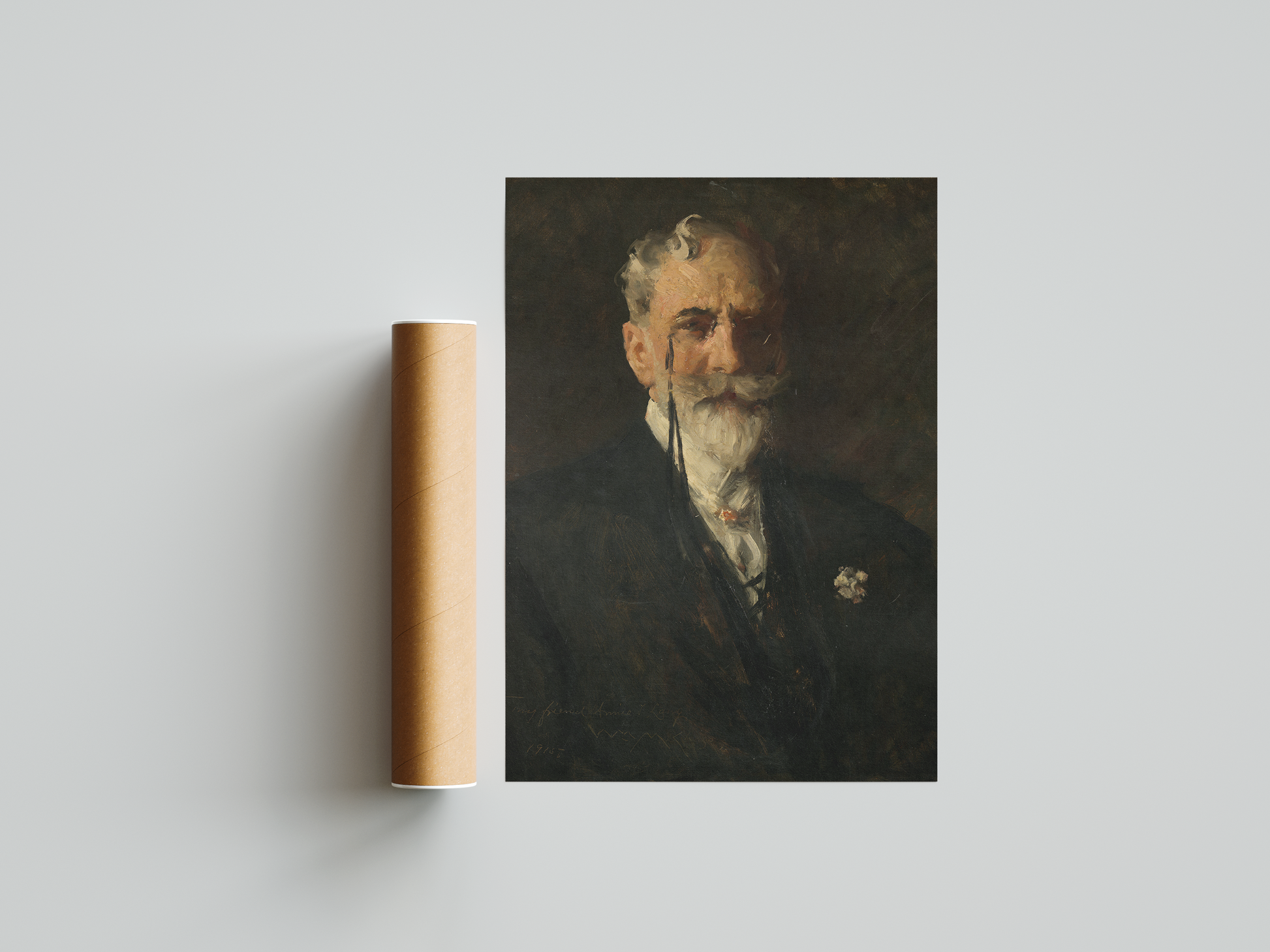 In this painting, an elderly man is depicted in a timeless, classic suit conveying his dignified nature. The suit’s fabric has a subtle wool texture adding depth and warmth to the piece, with the folds and creases giving a sense of the wear of time, reflecting the years that have passed.
