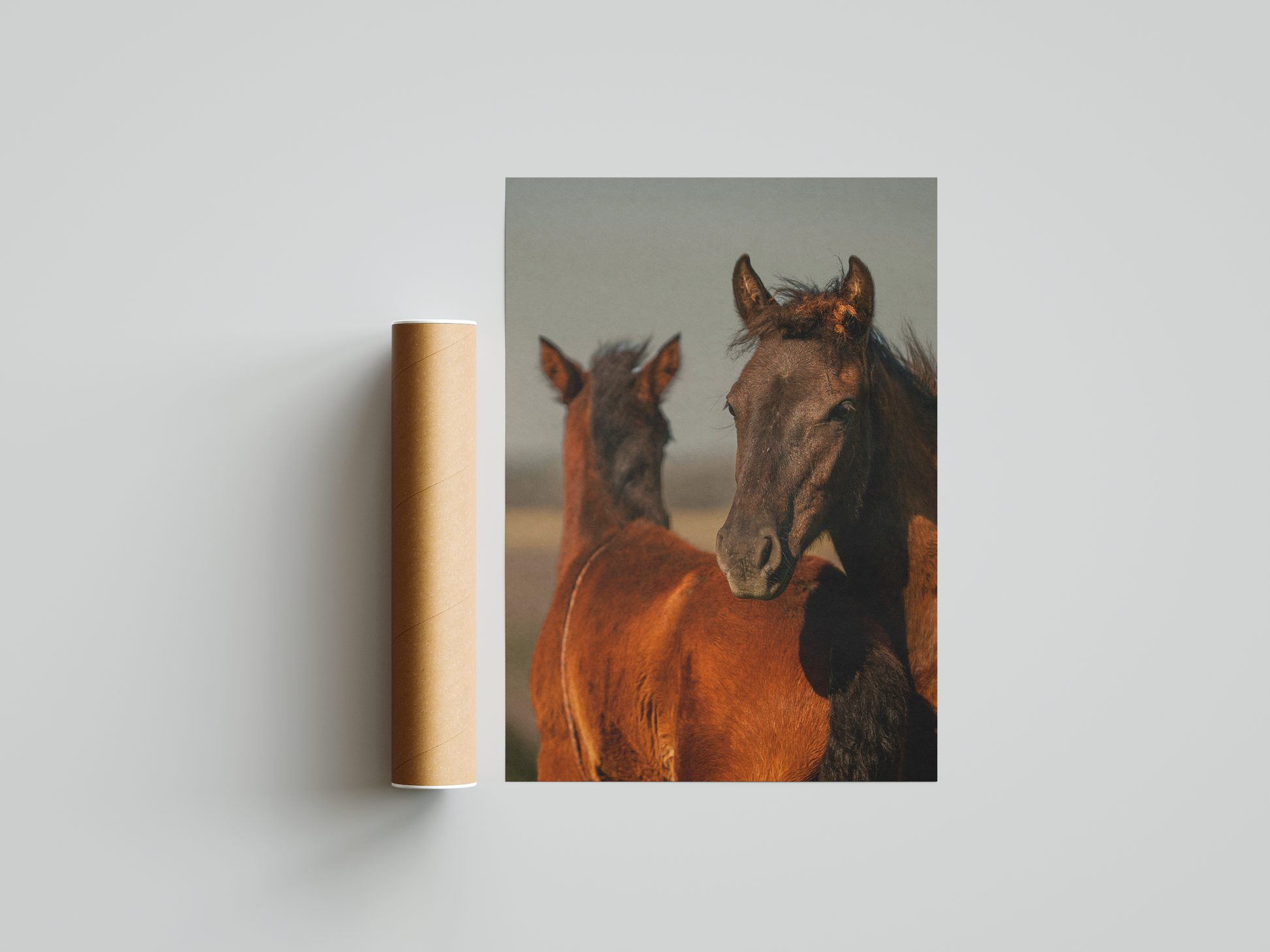 "Riders of the Wind" is a photograph inspiring a sense of adventure, freedom, and the timeless connection between horses and the wild. It’s a tribute to the strength and beauty of these majestic animals and the elemental forces of nature that they seem to embody. The poster evokes feelings of liberation, urging the viewer to embrace the open road and the wind that drives them forward.